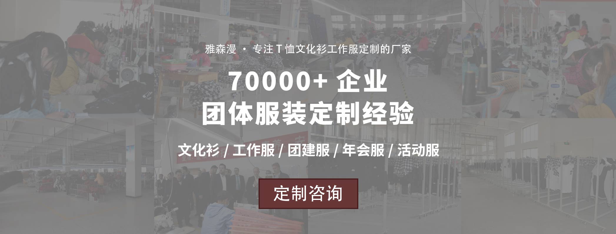 雅森漫是一家集设计、制版、生产、销售为一体的专业服装定制公司,秉承“统一着装,形象非凡”的理念,深耕文化衫、POLO衫、卫衣等团体服装定制领域超16年。公司拥有超2000平方米的自有生产基地,配备全自动裁床、数码印花机、智能缝制设备等先进生产线,年产能达200万件,可稳定承接大规模订单。雅森漫始终坚持以过硬的质量、优惠的价格和高效率的服务,站在客户角度着想,致力于为客户创造最大价值,因此赢得了包括众多知名企业在内超70000家客户的一致好评。