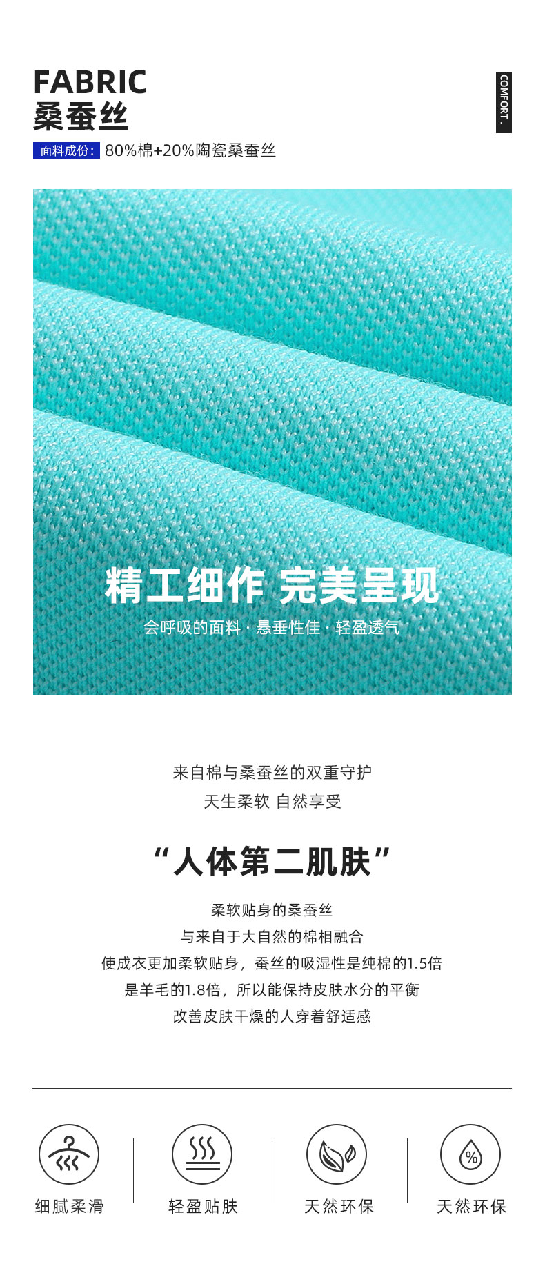 1. 布料:40S 190G 80%棉20%陶瓷桑蚕丝