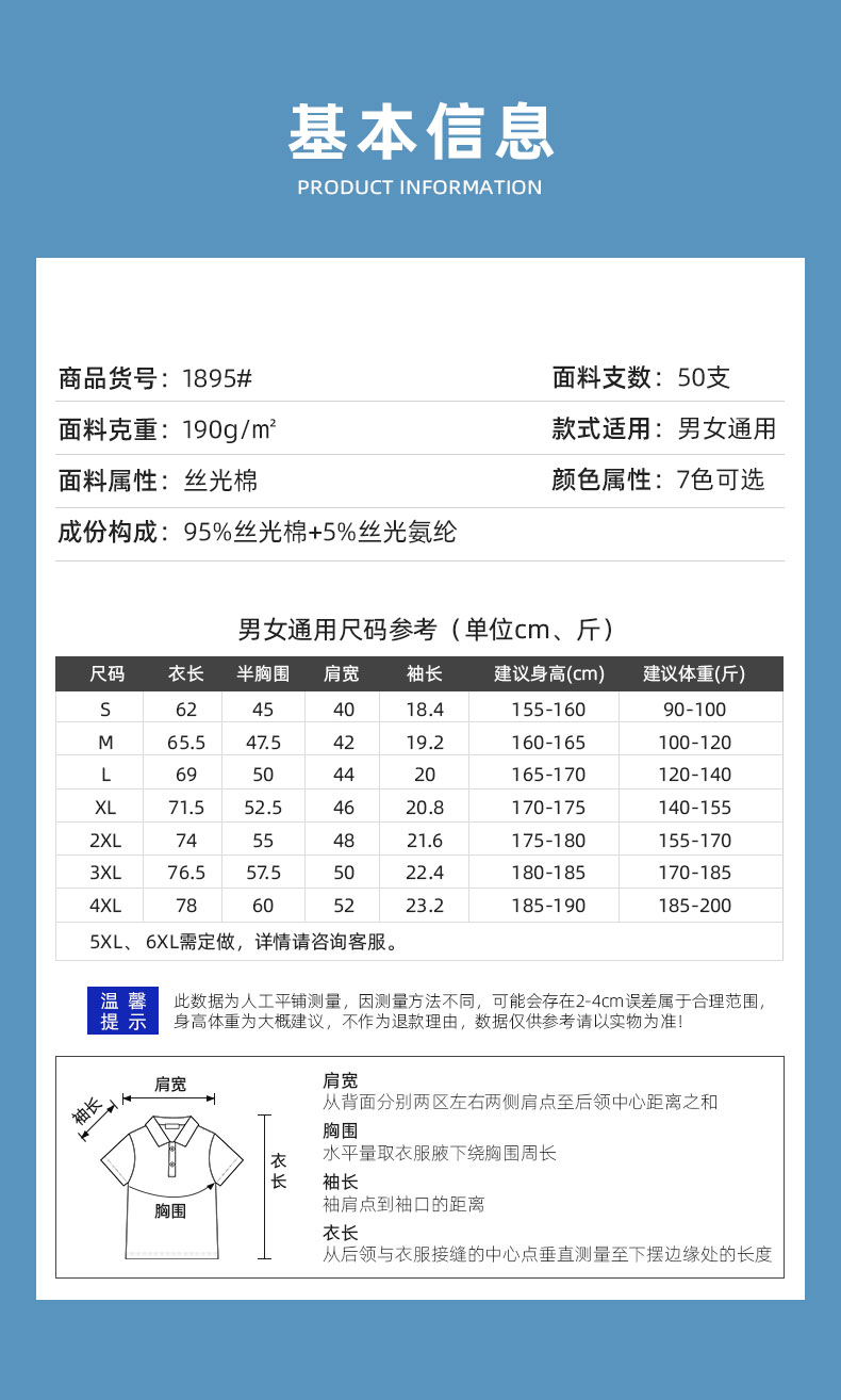 货号:1895 面料:50S 190G双丝光棉 95%双丝光棉 5%丝光氨纶
