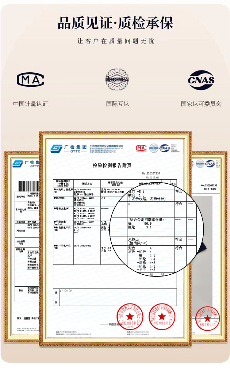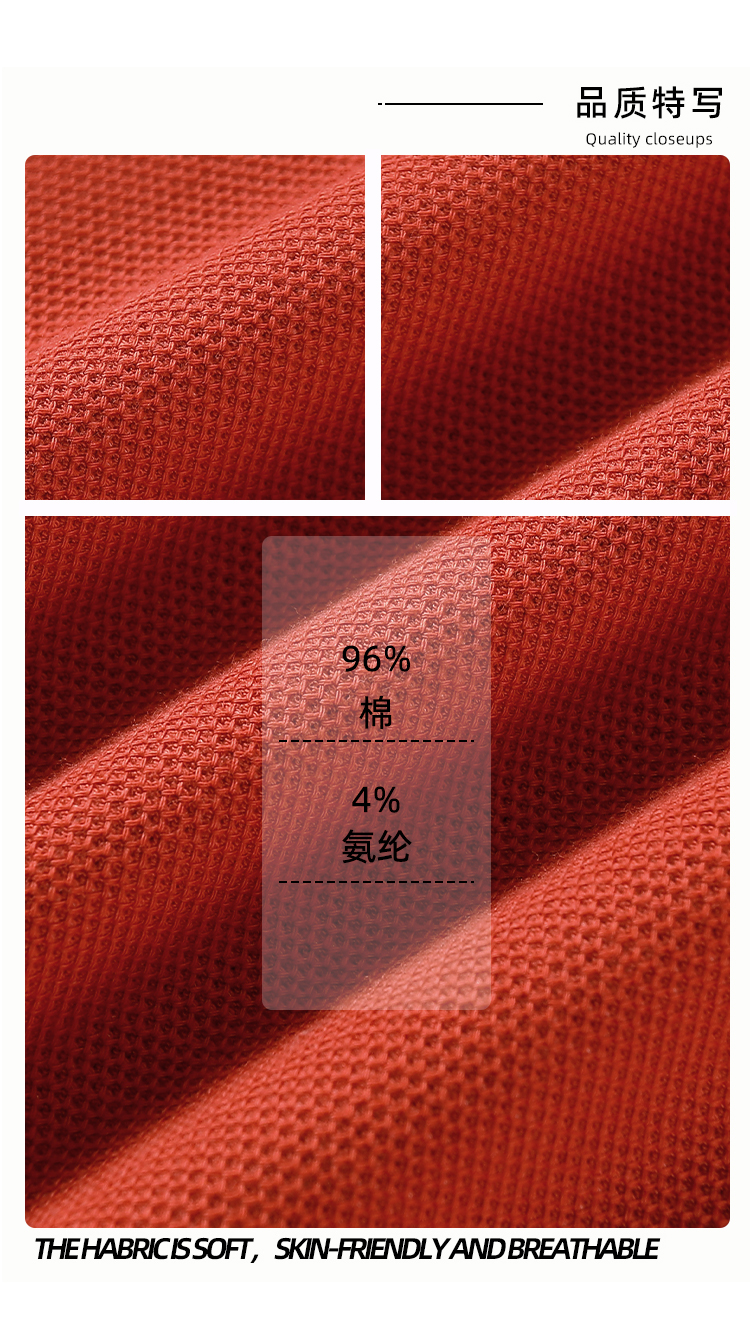 1. 布料:40S 210G 六角珠地千绒棉 96%棉 4%氨纶