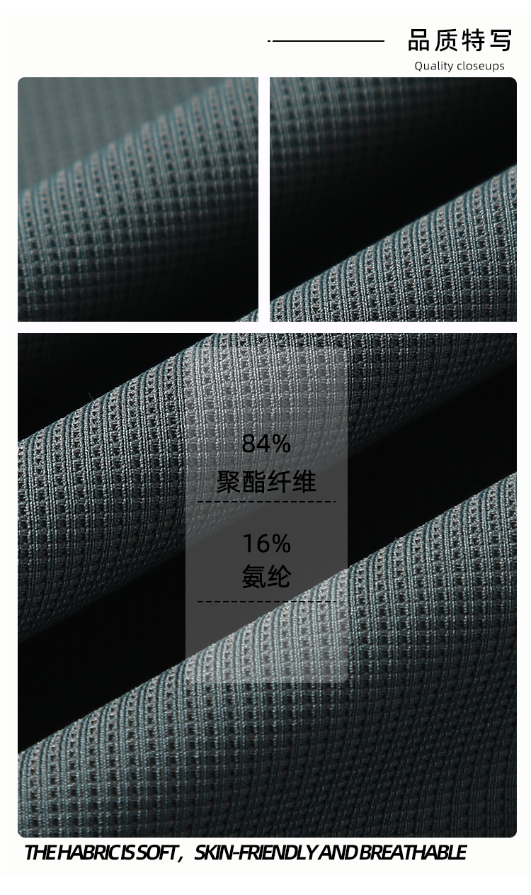 1. 布料:210G 华夫格 84%聚酯纤维 16%氨纶