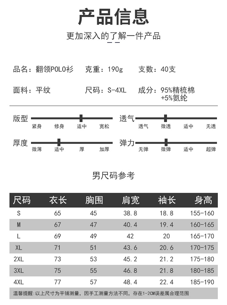 1. 布料:40S 190G 紧密奥戴尔 5%氨纶 95%精梳棉