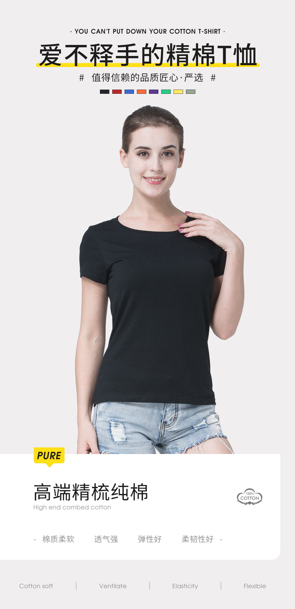 YSM 0005/633纯棉女士T恤,以出口欧美质量体系,厂家直销。高品质女士T恤定制,已服务62000+家团体,女士T恤定制不起皱不缩水不起球,欢迎咨询客服15915402786。