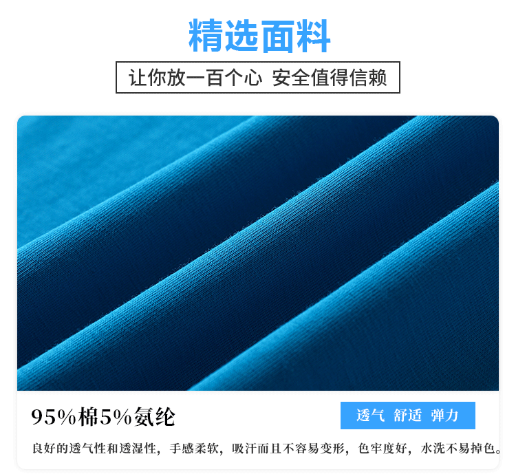 面料:40S 190G 精梳平纹双面 95%棉 5%氨纶